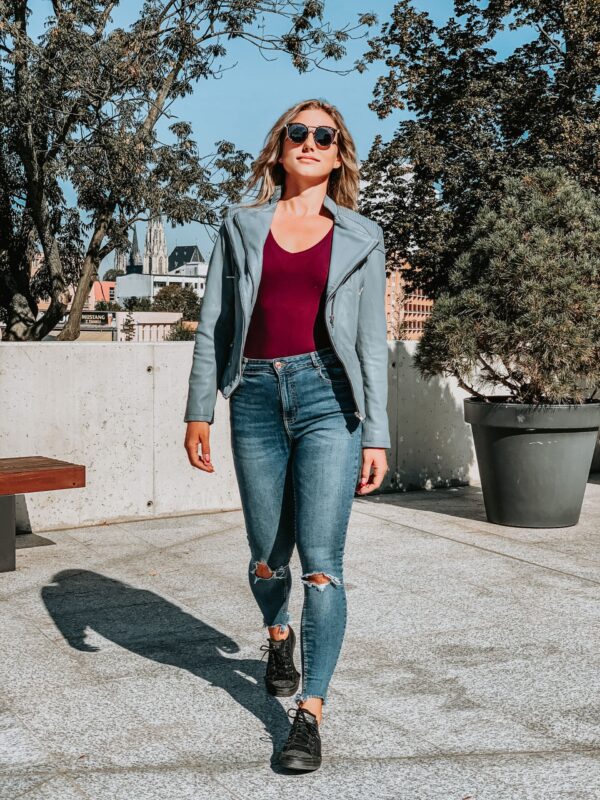 Jessica Grey – Dámský kožený křivák šedomodrý