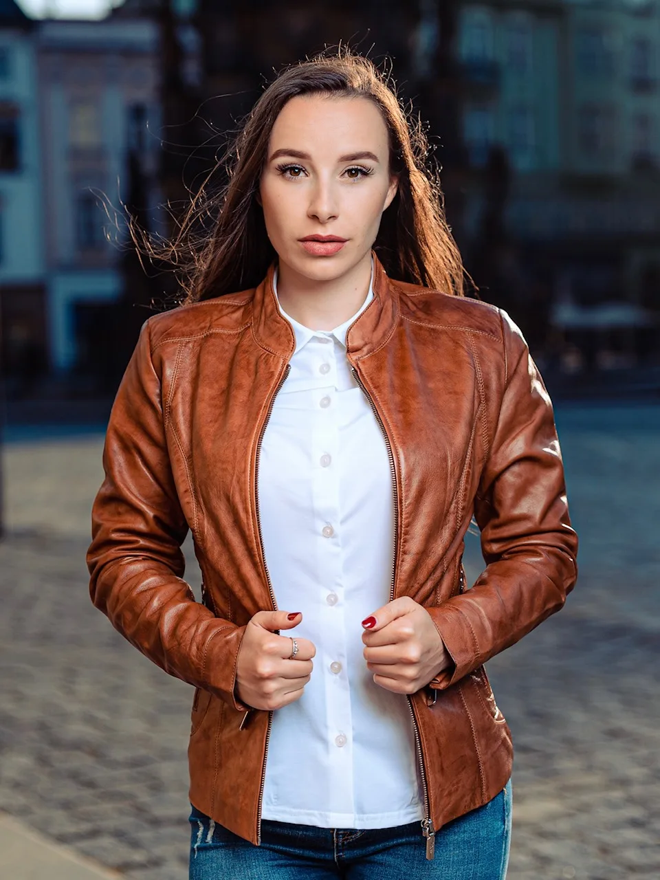 Becca Brownish – Dámská kožená bunda zlatá hnědá