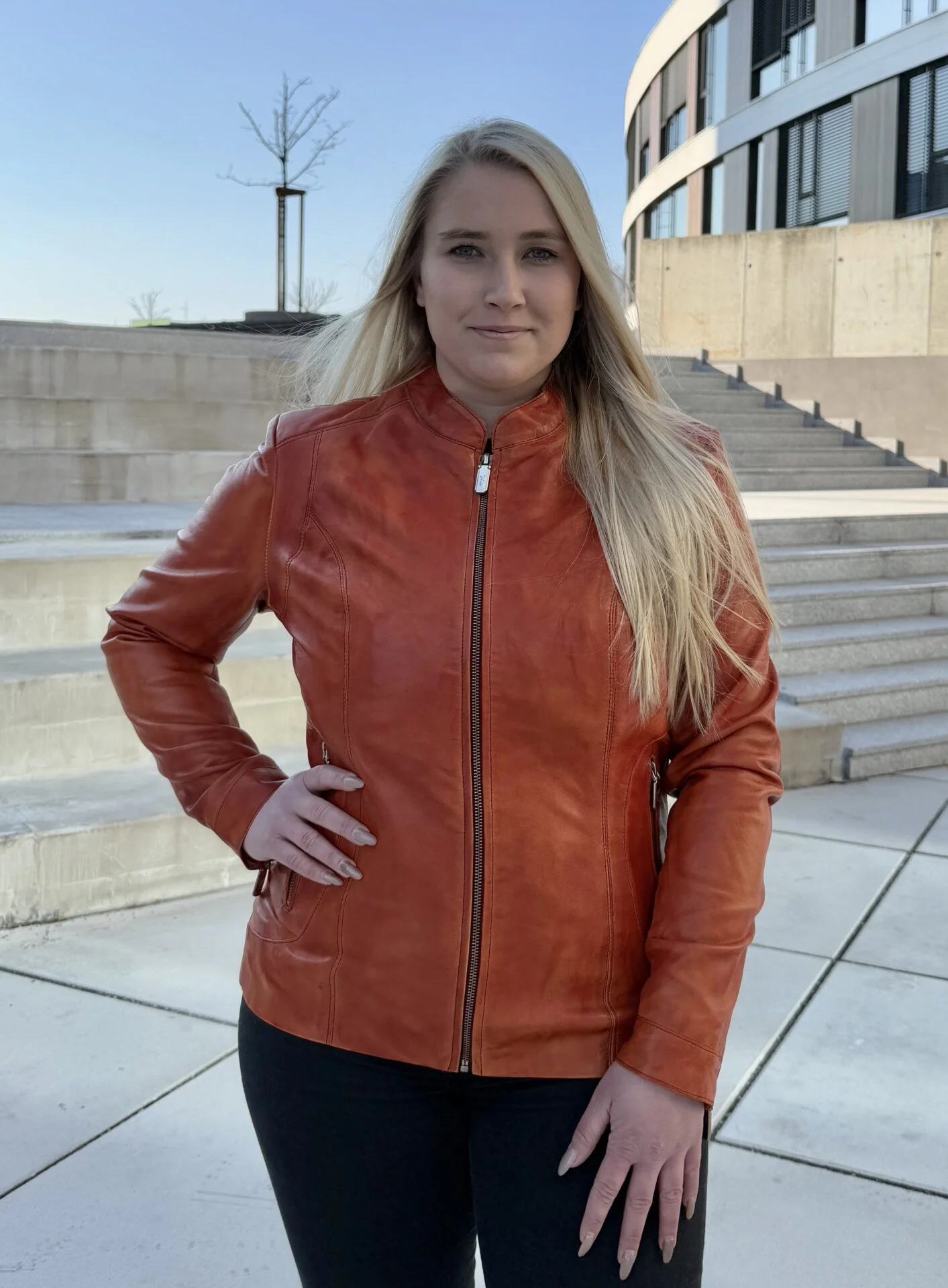 Dámská kožená bunda Becca je elegantní a moderní kousek, který zaujme nejen svým designem, ale také vysokou kvalitou zpracování. Tato bunda je vyrobena z jemné, ale odolné kůže, která je příjemná na dotek a zaručuje dlouhou životnost. Co však bundu Becca Flexi odlišuje od našich jiných dámských bund, je její unikátní stretchová část na bocích. Tento detail nejen přidává na vizuální atraktivitě, ale také zajišťuje maximální pohodlí a volnost pohybu.
