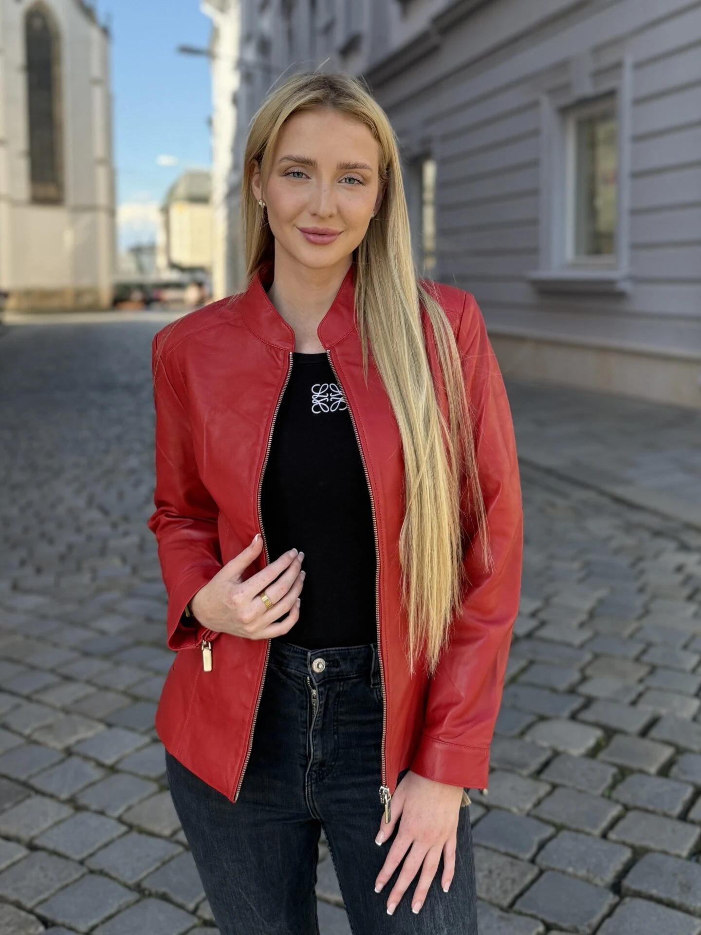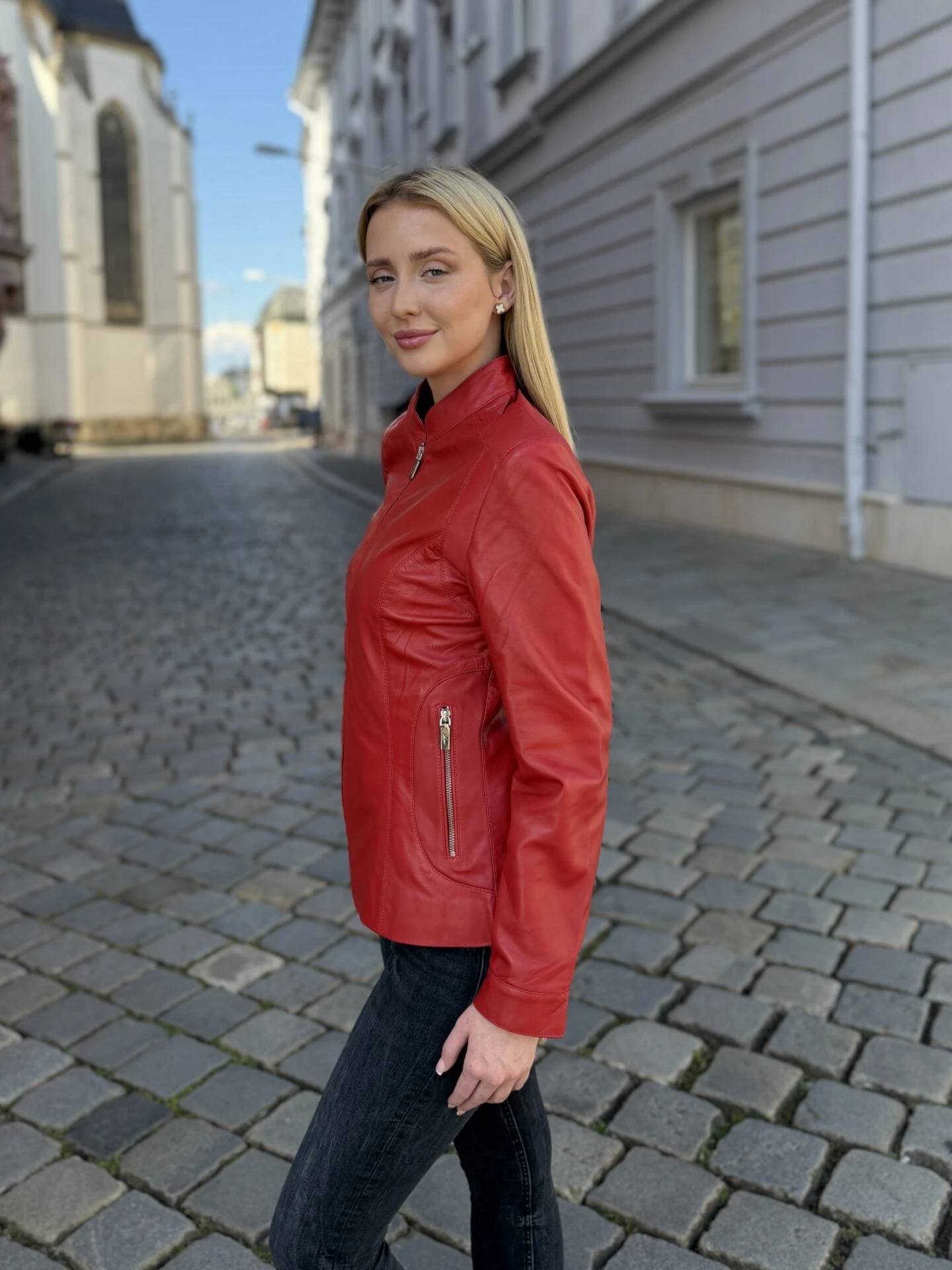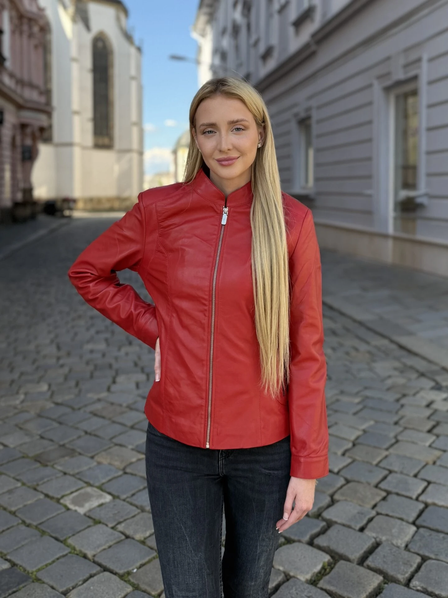 Becca Red je kožená bunda s čistým střihem a výraznou červenou barvou, která přináší svěžest a jednoduchou eleganci do každodenního šatníku. Je navržená pro ženy, které hledají nadčasový kousek bez zbytečných ozdob, ale s důrazem na kvalitní zpracování a výraz barev.