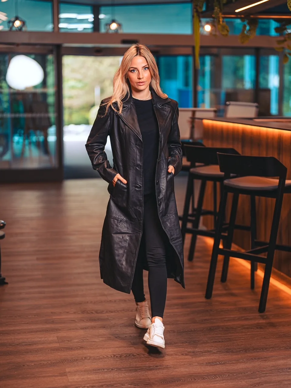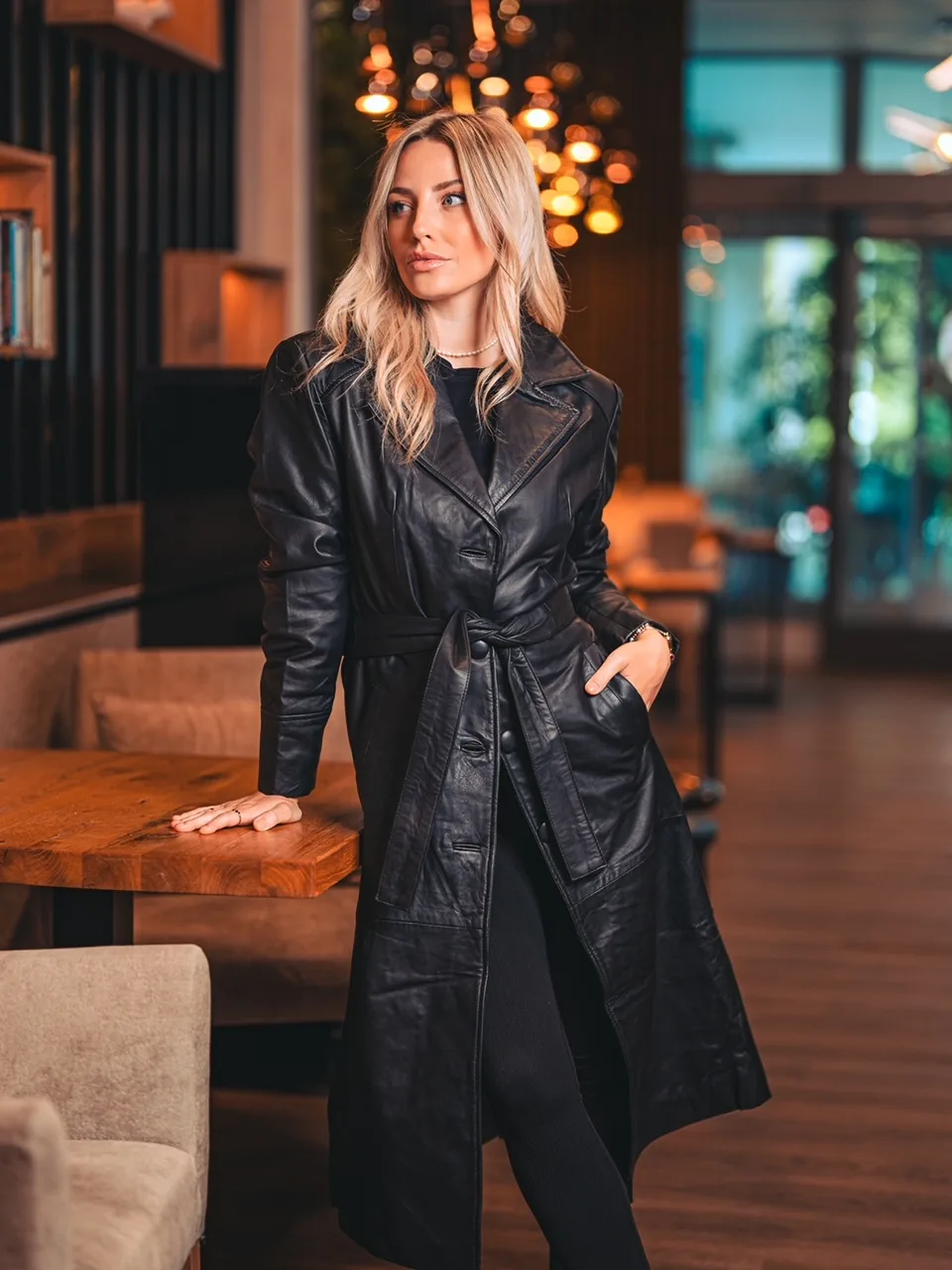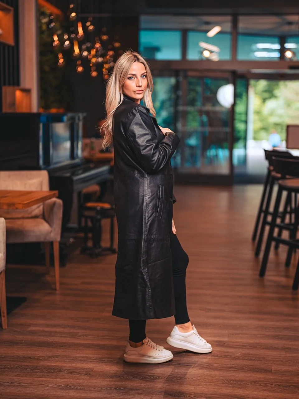 Tento černý kožený kabát je skvělou volbou pro ženy, které chtějí vyniknout a cítit se sebevědomě. Vzbuzuje originalitu a nápaditost. Skvěle se hodí k elegantním i ležérním outfitům, ať už jdete do práce, na večírek nebo na procházku po městě. Oslňte své okolí jedinečným stylem!