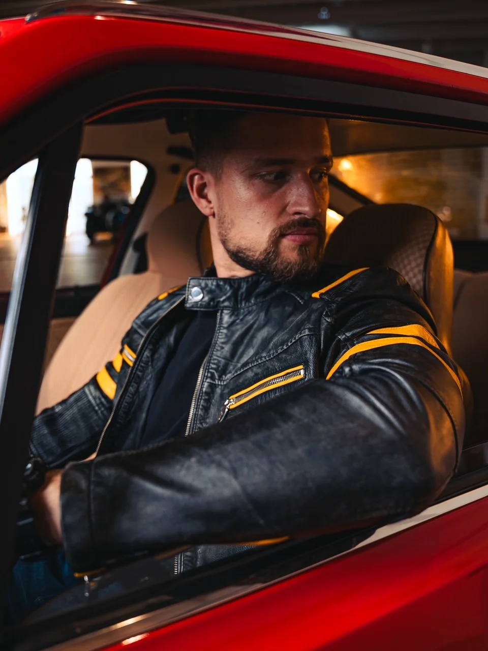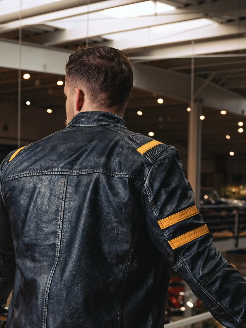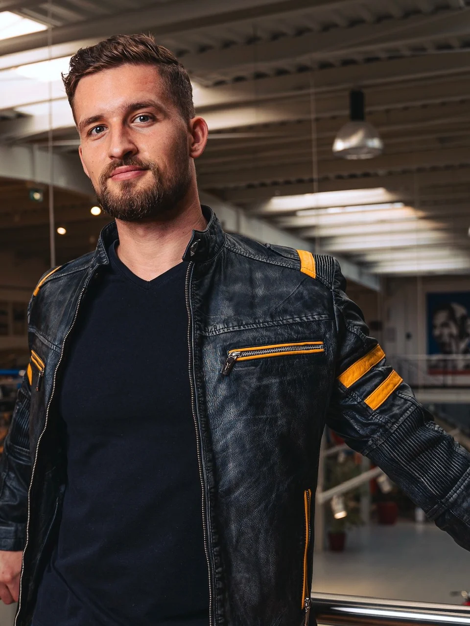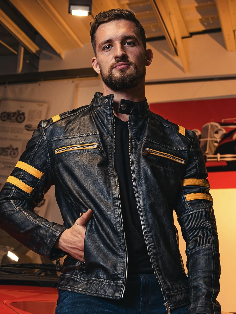 Sportovní kožená bunda – Hamilton Supersport černá se žlutým pruhem