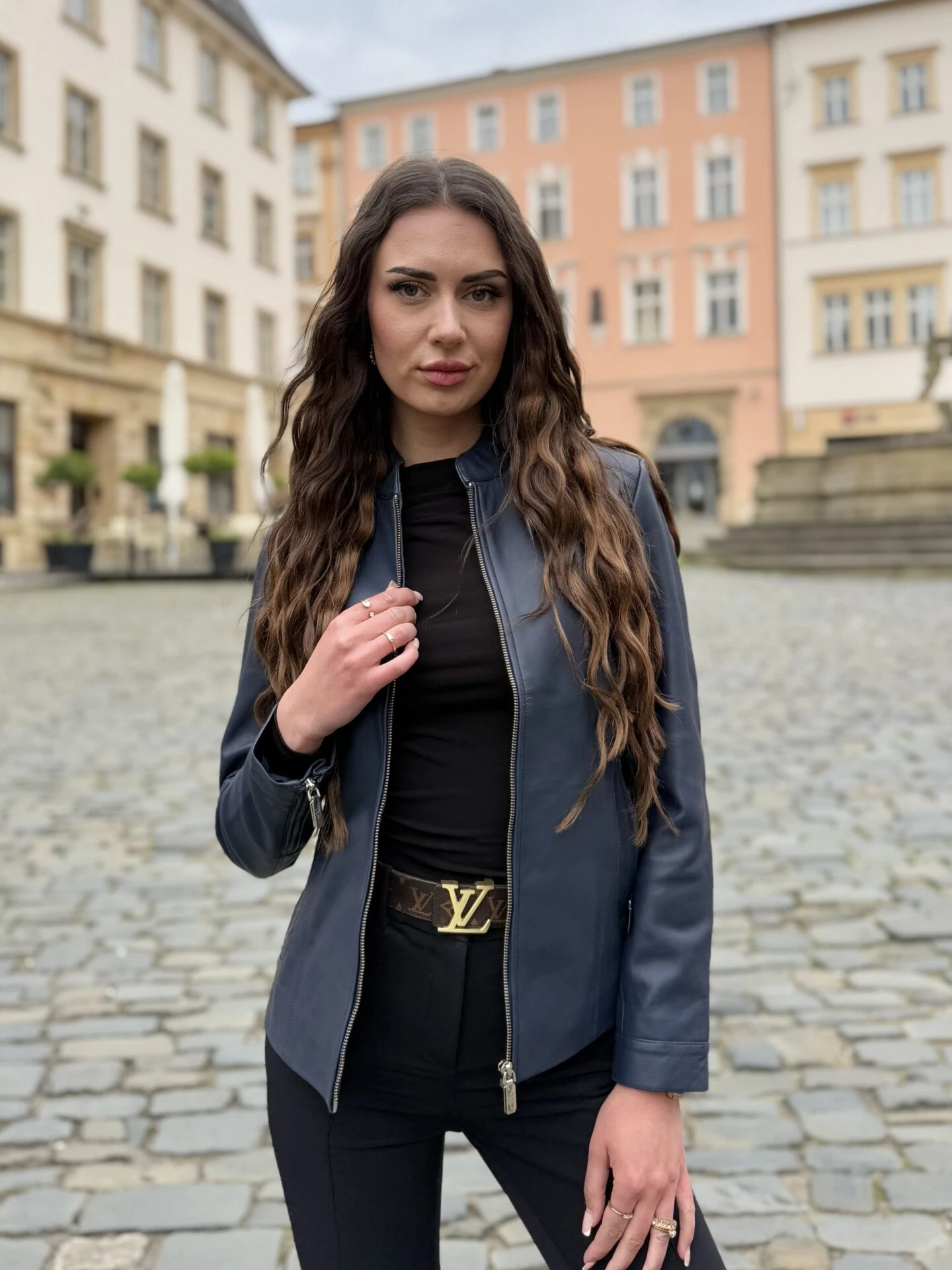 Becca Navy Blue – Kožená bunda tmavě modrá