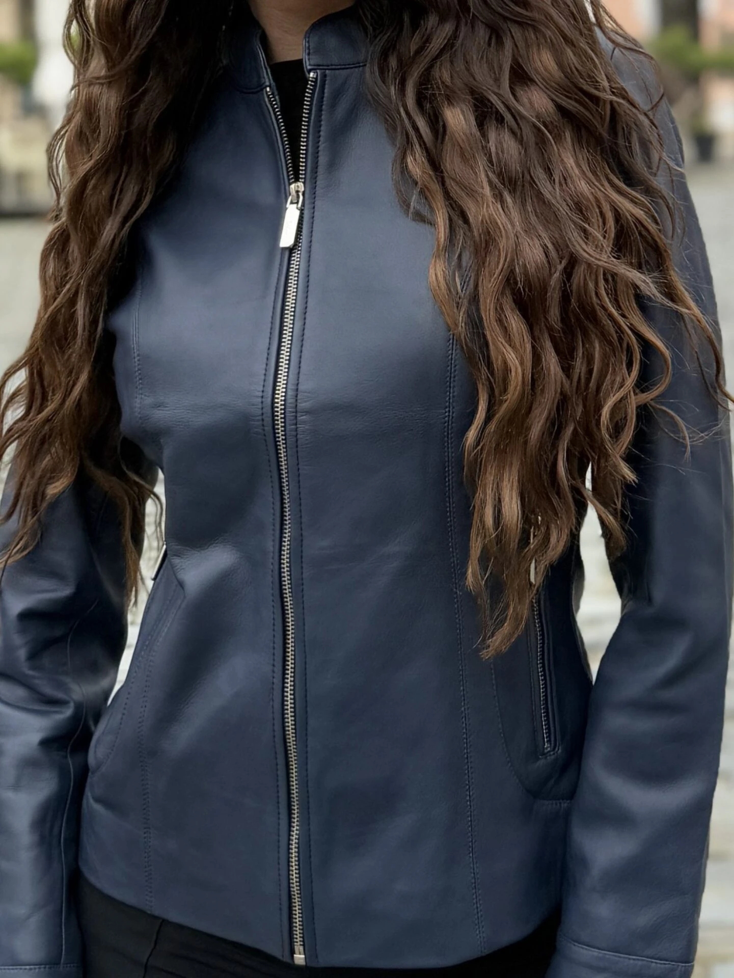 Becca v tmavě modré barvě je elegantní kožená bunda s čistým a jednoduchým střihem, který zajišťuje pohodlné nošení a nadčasový vzhled. Stojáček u krku a hladké zapínání na kovový zip podtrhují minimalistický design bez zbytečných doplňků.