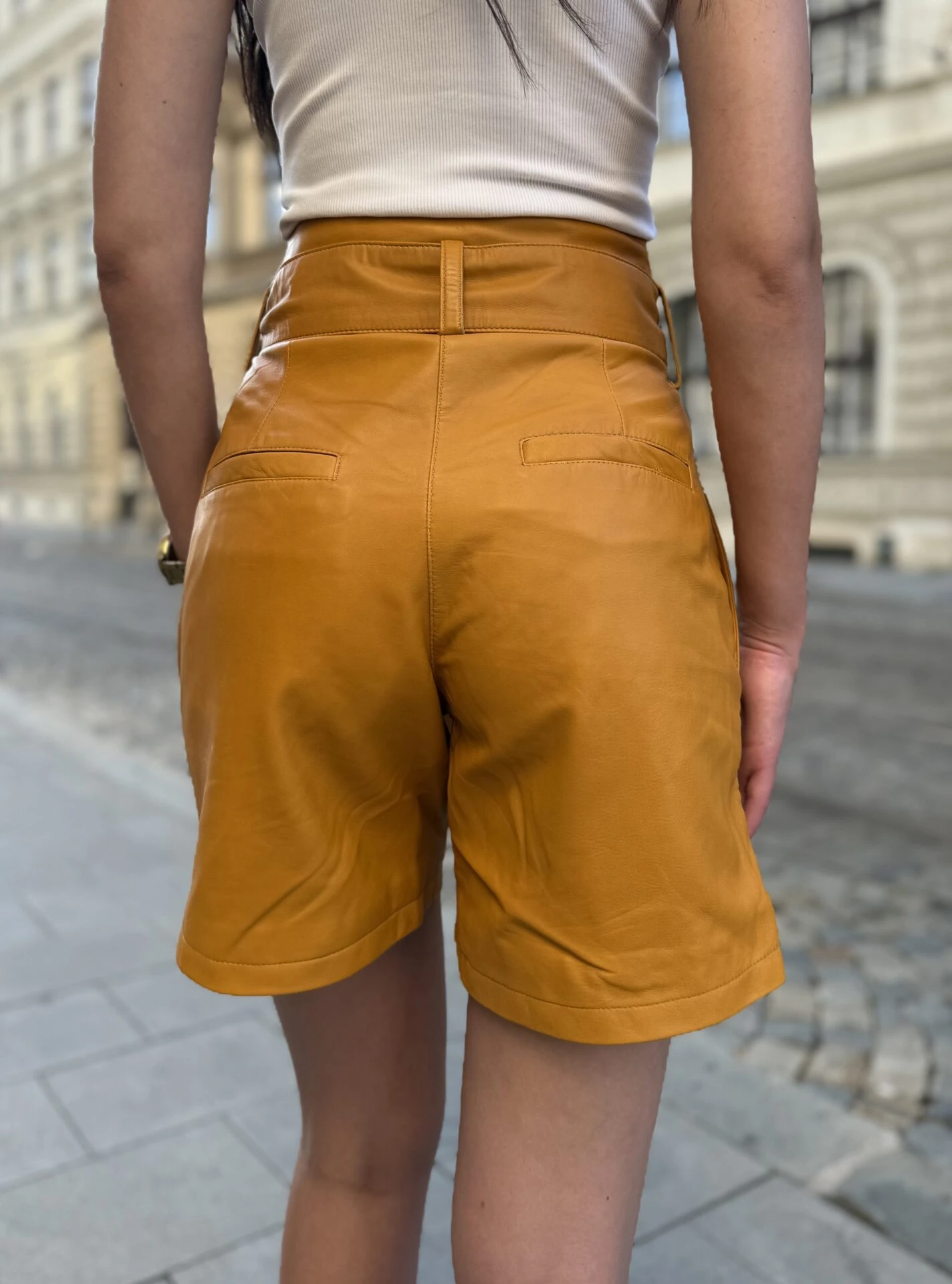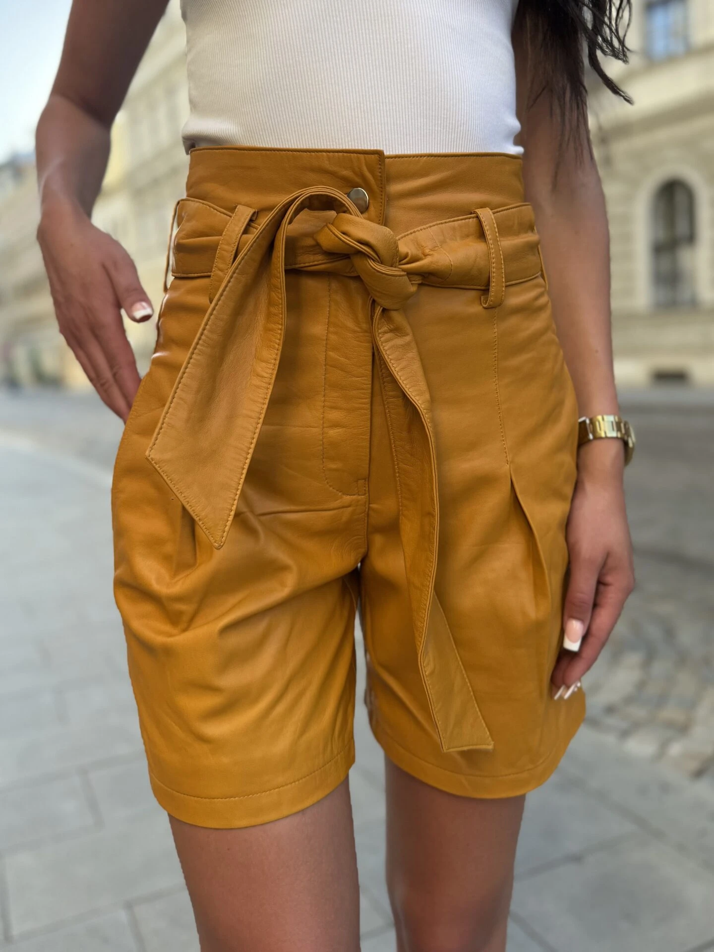 Marilyn Yellow – Kožené dámské kraťasy žluté