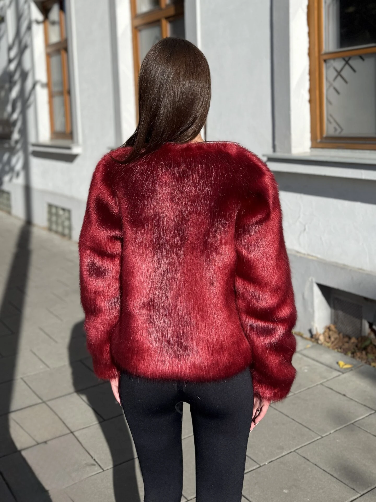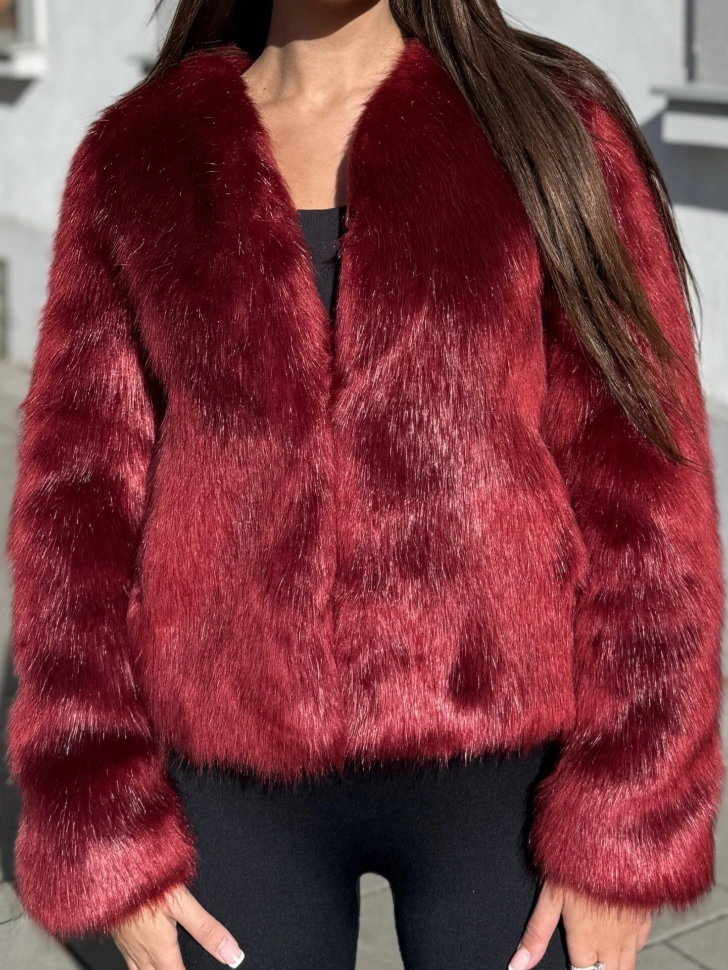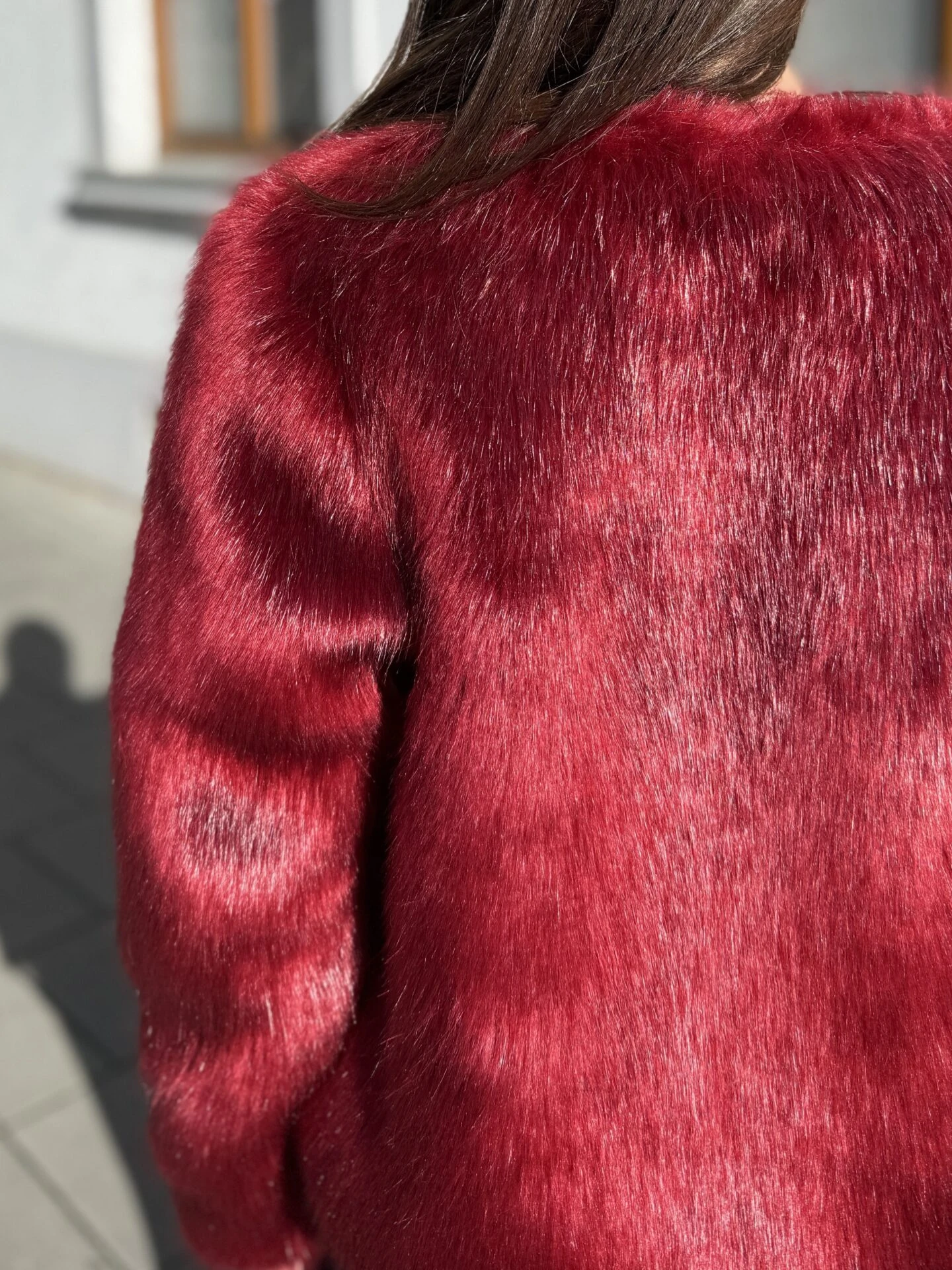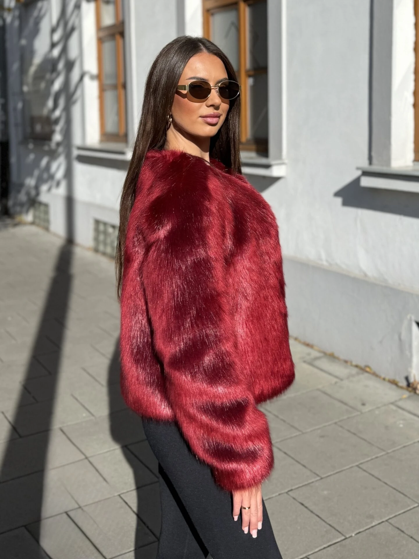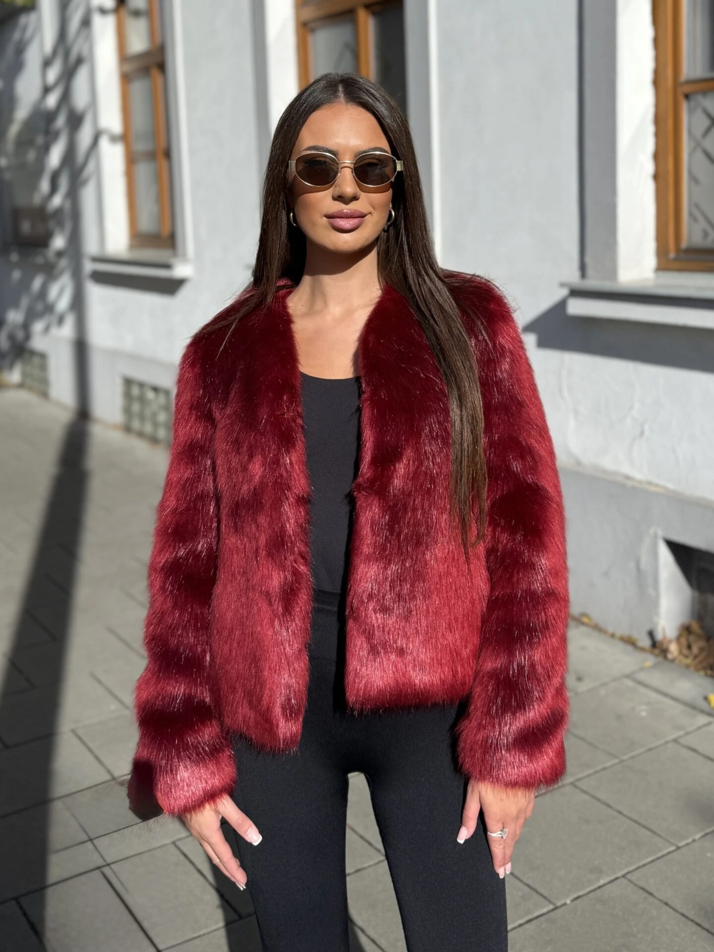 Kožich NIki vyniká svým elegantním střihem a luxusním vzhledem — hluboká vínová barva dodává výraz a jemná umělá kožešina působí velmi příjemně na dotek. Kratší délka a čisté linie umožňují snadné kombinování s různými outfity — od městské elegance po večerní posezení.