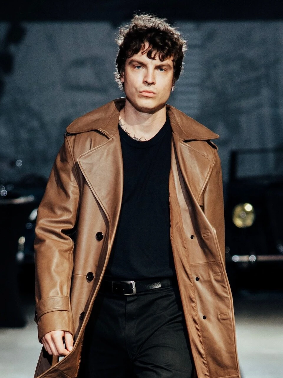 Dlouhý pánský dvouřadý kožený kabát s klopami po stranách a se zapínáním na knoflíky. Ušitý z nejkvalitnější jehnětiny. Se zapínáním na knoflíky ve dvou řadách. V přední spodní části je vybaven dvěma kapsami a elegantním páskem se sponou. Zadní část připomíná pláště stylu Assasin.