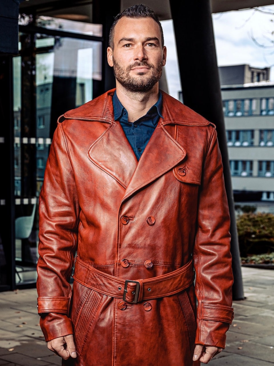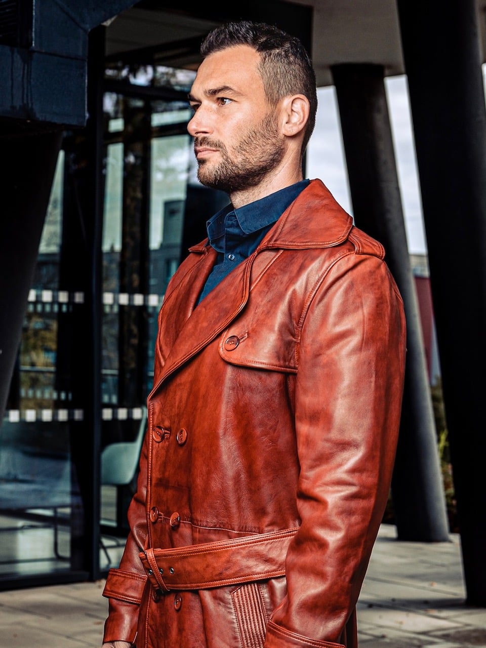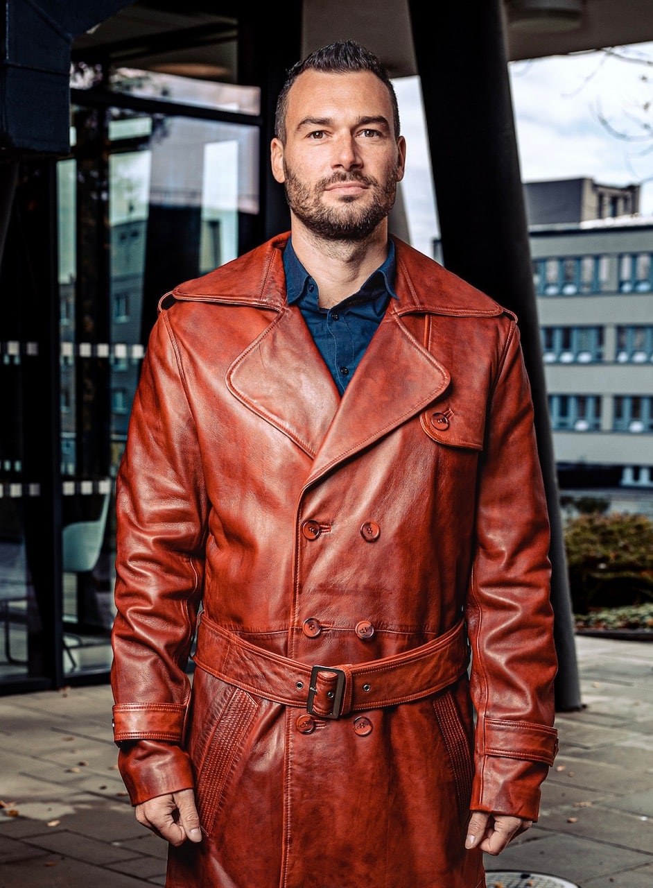 Pánský dvouřadý kožený kabát – RENE Bordeaux