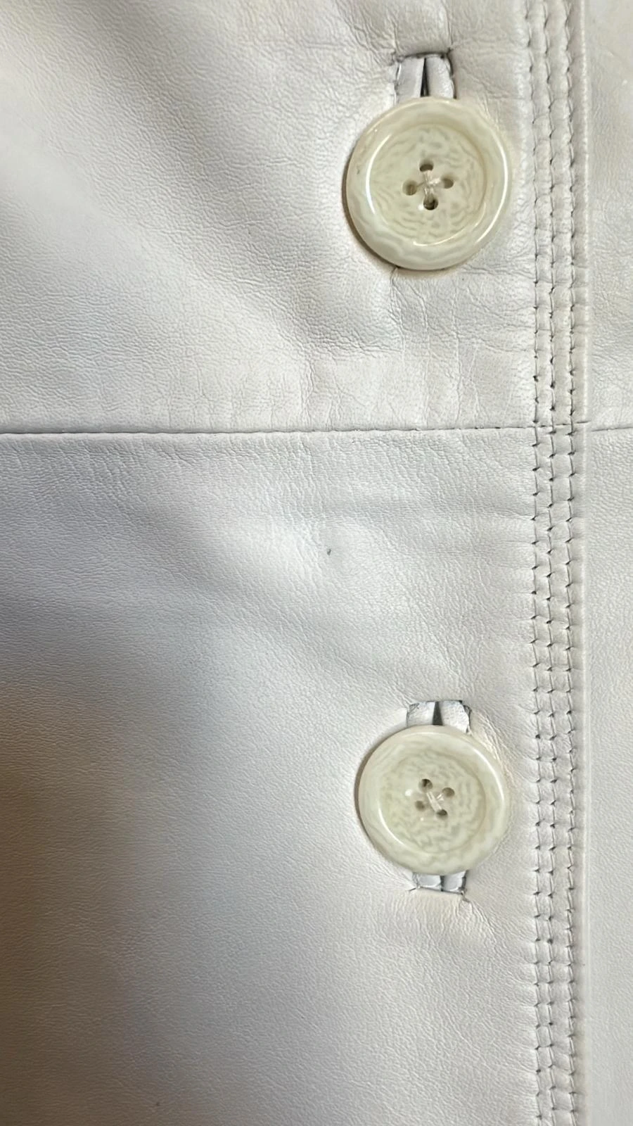 Sabine White – Dámský bílý kožený kabát s knoflíky-DOPRODEJ